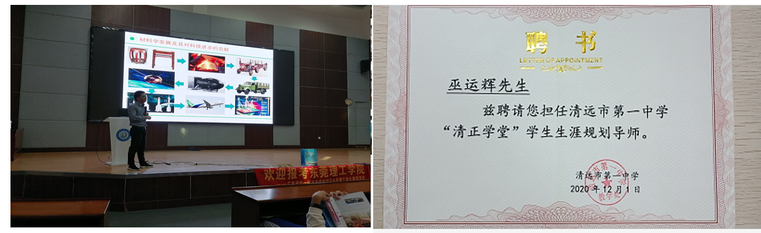 2020年12月1日,williamhill官方网站巫运辉博士、许伟娜博士前往优质生源基地清远市第一中学开展送课活动招生宣讲活动。清远市第一中学戴主任热情地介绍了公司的整体情况,历年在高考中取得优异成绩。巫运辉博士给该校学子送上《中国制造2020-新材料与科技强国》为主题的精彩课程。课后,同学们热情洋溢地提问,表示要好好努力学习,为国家科技奉献自己的一份力量。