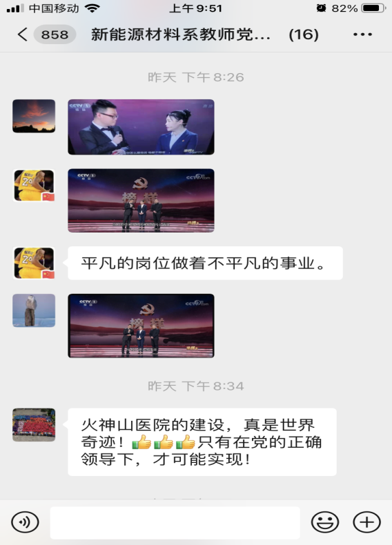 3月22日晚,中共中央组织部和中央广播电视总台联合制作的《榜样5》专题节目,在央视综合频道(CCTV-1)晚8点档首播。新能源材料系教师党支部组织全体党员收看。
