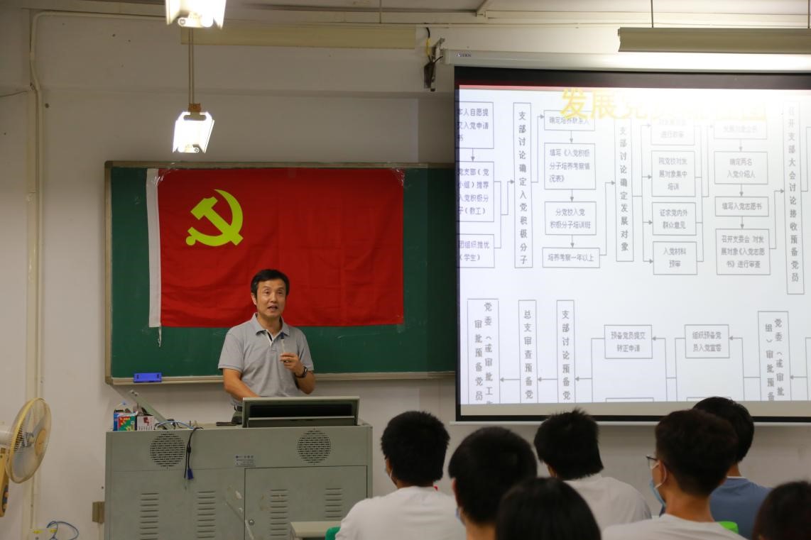 君光书记在授课过程中,深入浅出地介绍了入党基本流程,随后他结合校园情况向同学们阐述党组织“全心全意为人民服务”这一宗旨的内涵与意义,最后向同学们讲授入党必须要掌握的党史知识。君光书记号召同学们在校园生活中,要积极主动地为身边的老师与同学服务,在服务社会和他人的过程中实现个人价值。
