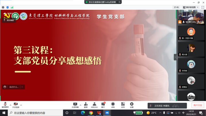 4月21日,williamhill官方网站员工党组织第一支部、第二支部在线上召开“抗疫有我,‘青’尽全力”主题党日活动。会议由各员工支部书记主持,员工支部全体员工党员出席会议。