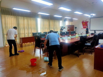 会议第二项,学习爱国卫生运动的光辉历程,深刻领悟爱国卫生运动的重要意义,并对4B306会议室进行了全面的清洁打扫,地面、桌面、空调表面等在与会党员的齐心协力下焕然一新。