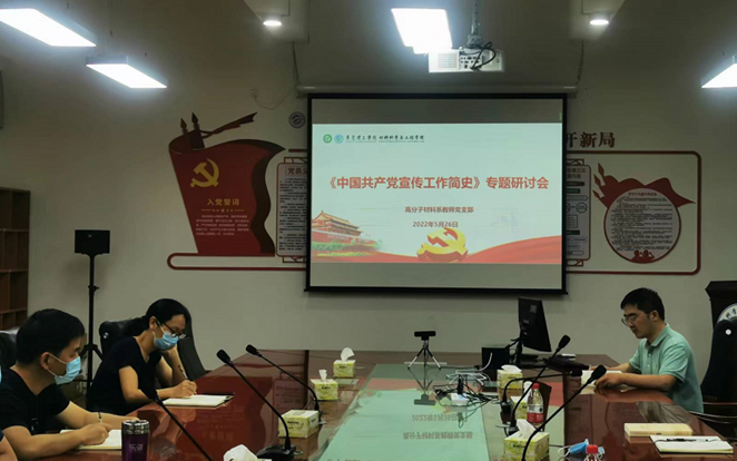2022年5月26日,高分子材料系教师党支部在williamhill官方网站4B306会议室开展《中国共产党宣传工作简史》专题学习和深入研讨,会议由党支部副书记张晓凡主持。