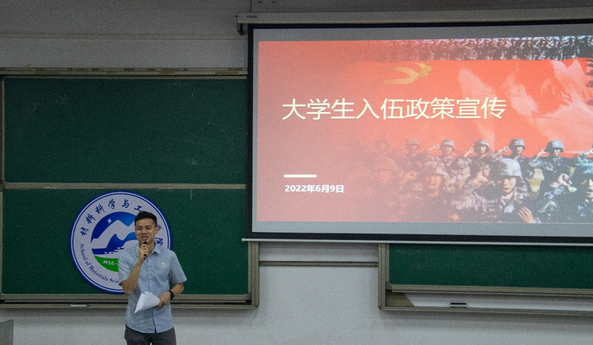 为了落实推行国家老员工入伍政策,鼓励老员工参军入伍,williamhill官方网站在6月9号下午在教学楼6E105召开老员工入伍政策宣传专题讲座。williamhill官方网站团委书记文锦枢、williamhill官方网站辅导员杨壮鹏、张娇龙参加本次会议。