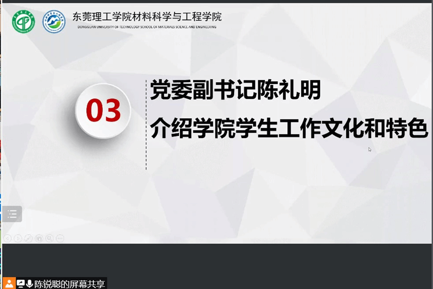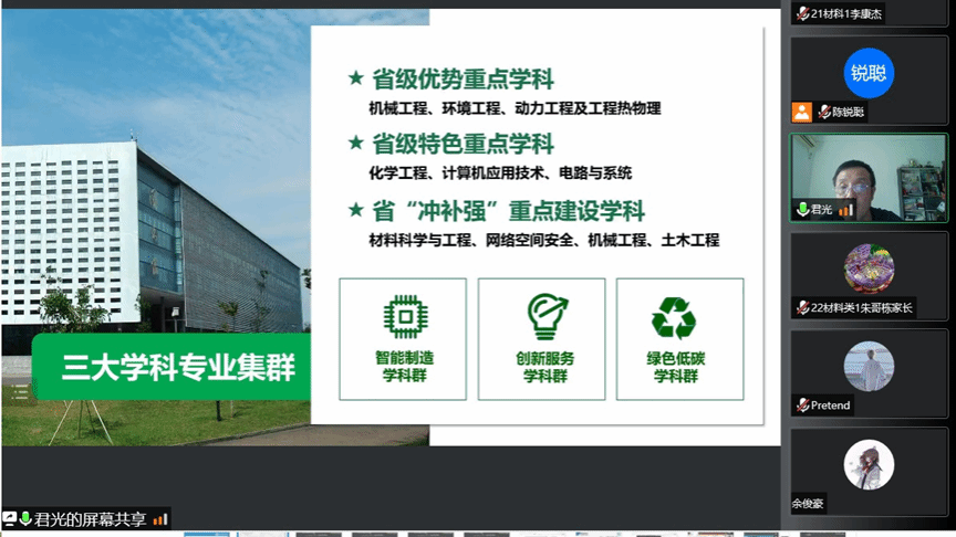 为促进家校沟通,帮助广大2022级新生及家长加深对公司及材料学科专业的认知和公司员工工作的了解,确保迎新工作的有序进行,9月11日下午,williamhill官方网站通过腾讯会议举办了新生家长线上见面会。会议由辅导员陈锐聪老师主持,公司党委书记君光、副经理陈德良、党委副书记陈礼明参加了会议。