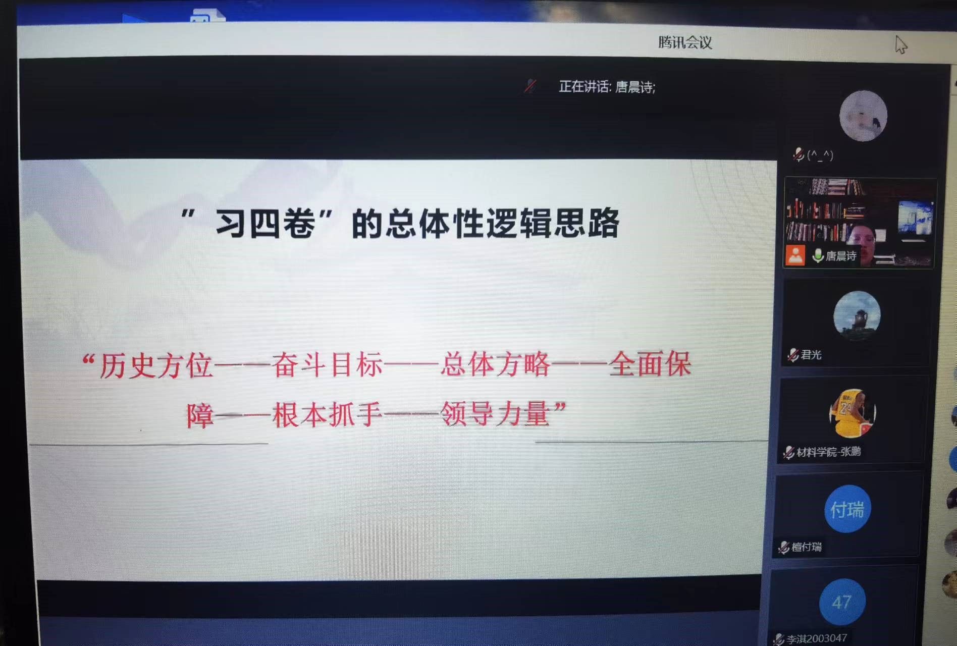 君光书记总结强调各系、各支部要以学习贯彻《习近平谈治国理政》第四卷为契机,立足本学期工作中心任务,以昂扬的斗志、扎实的作风砥砺新征程、奋进新时代、书写新篇章,奋力喜迎党的二十大。