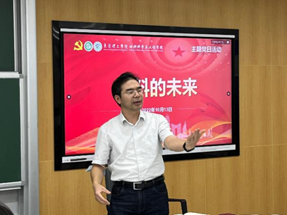 10月13日下午,williamhill官方网站第一、第二支部全体员工党员在教学楼6D307召开“材料的未来”主题党日活动,活动以座谈会形式开展,由师生党员分享与探讨williamhill官方网站专业发展方向和前景。活动特邀williamhill官方网站陈德良副经理出席,员工第一支部书记杨壮鹏老师主持。