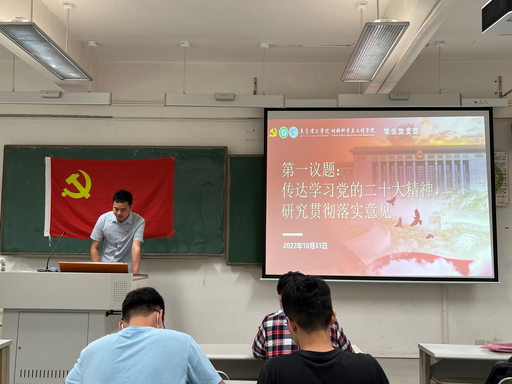 2022年10月31日,williamhill官方网站员工第一、第二支部分别在教学楼6A308、6B302教室召开支部大会,学习党的二十大精神,研究贯彻落实意见,并讨论陈舒鑫等16名同志加入中国共产党事宜。会议由各支部书记主持。